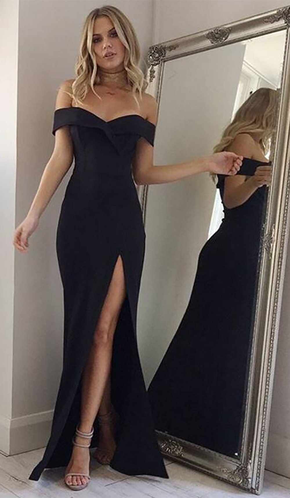 SBR030,Black Mermaid Long Prom Dresses Mermaid Black Prom Dress with Slit