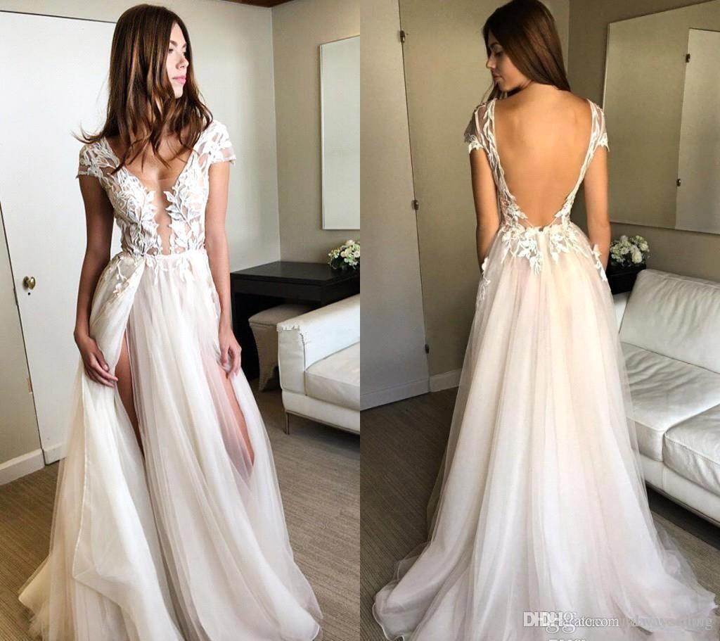 SBR043,Round Neck Cap Sleeves Backlesss Lace Wedding Dresses, Ivory Backless Lace Prom Dresses Evening Dresses