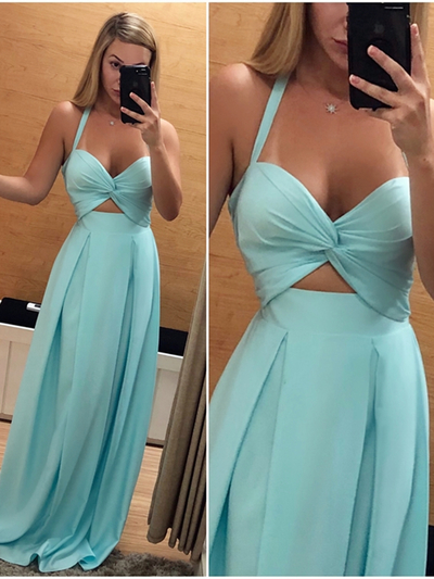SBR051,A Line Halter Neck Floor Length Blue Prom Dresses, Blue Floor Length Formal Evening Dresses