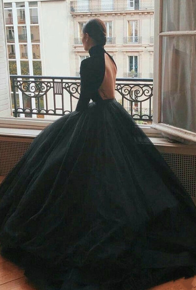 SBR060,Black High Neck Backless Prom Gown, Black Backless Formal Evening Dresses
