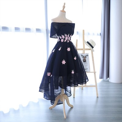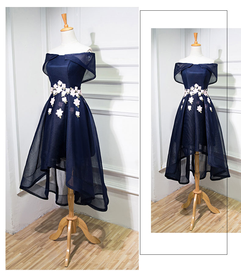 SBR083,Off Shoulder Navy Blue High Low Prom Dresses, Navy Blue Formal Graduation Dresses, High Low Evening Dresses