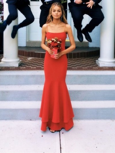 SBR091,A Line Spaghetti Straps Red Mermaid Prom Dresses, Red Thin Straps Formal Dresses