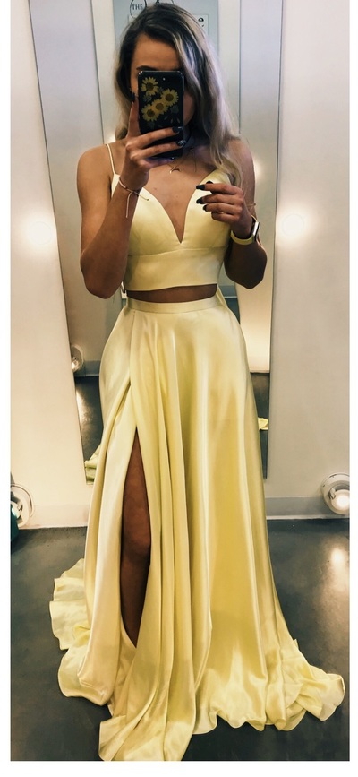 SBR094,A Line 2 Pieces Yellow Prom Dresses, Yellow 2 Pieces Formal Graduation Dresses