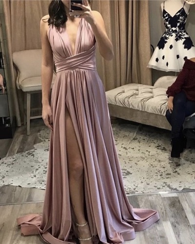 SBR095,A Line V Neck Floor Length Prom Dresses, V Neck Formal Dresses