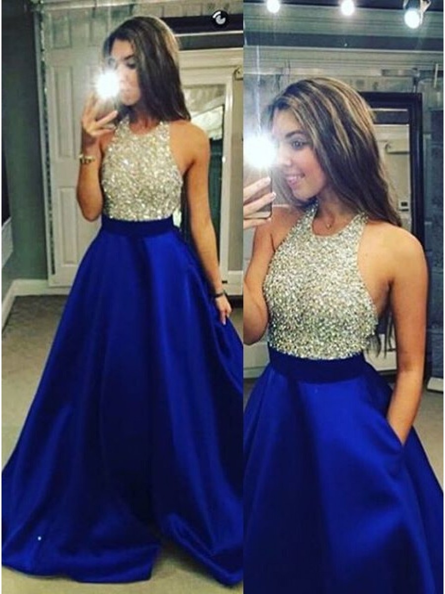 SBR113,Custom Made Royal Blue Round Neck Sleeveless Prom Dresses, Blue Formal Dresses