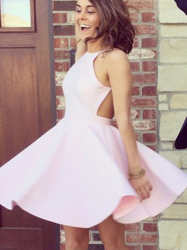 SBR118,A Line Pink Backless Short Prom Dresses, Pink Backless Homecoming Dresses, Pink Backless Formal Dresses