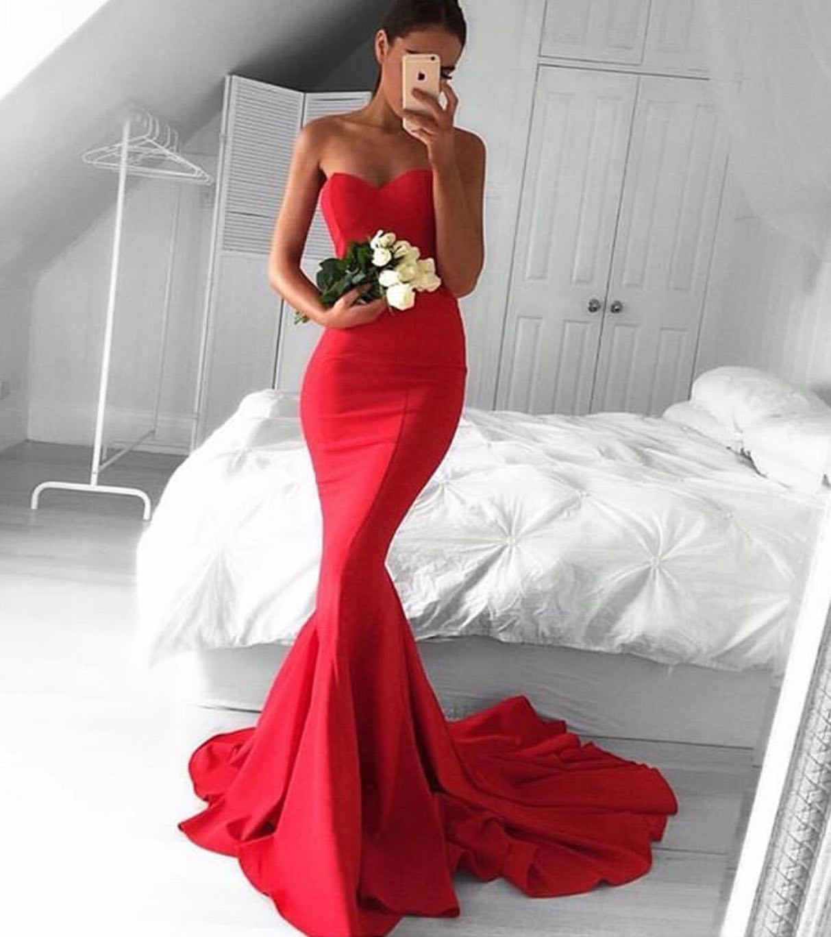 Glamorous Sweetheart Neck Mermaid Red Prom Dresses, Red Mermaid Formal Dress, Red Mermaid Evening Dress,SB2267