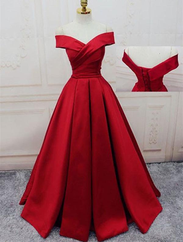 Red Off Shoulder Floor Length Prom Dress, Off Shoulder Formal Dress,SB2275