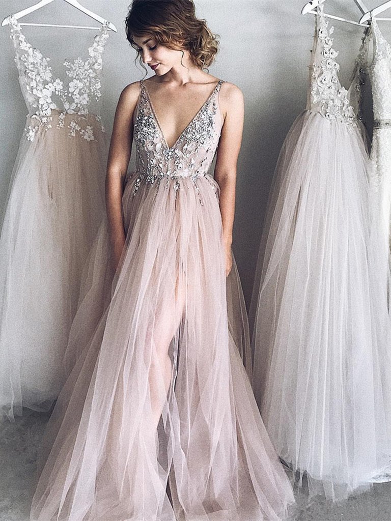 Elegant A Line V Neck Long Prom Dress,V Neck Formal Dress,Graduation Dress,SB2296