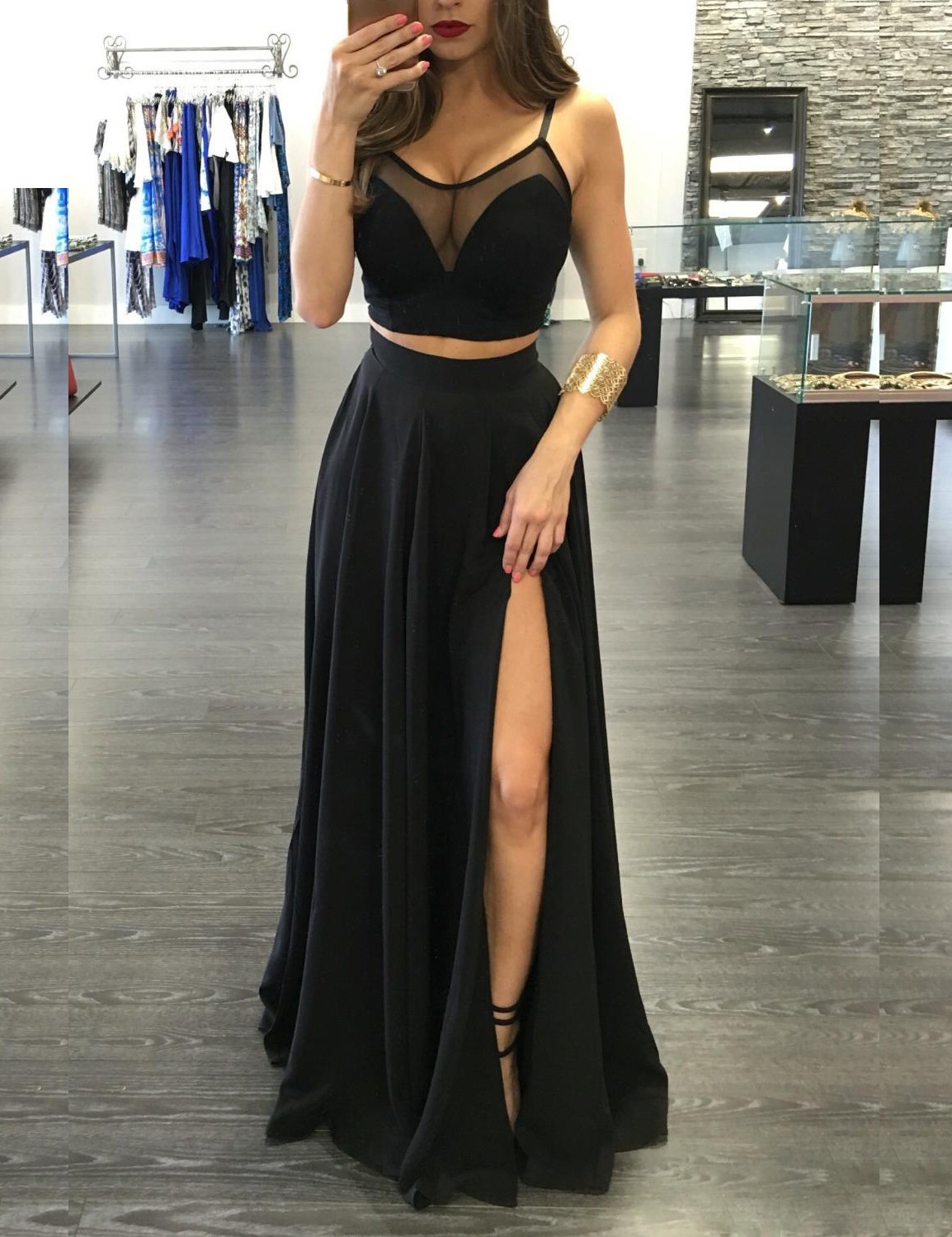 A Line Round Neck 2 Pieces Black Prom Dresses,2 Pieces Formal Dresses,SB2325