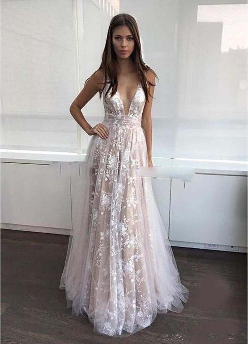 A Line V Neck Lace Prom Dresses,V Neck Lace Formal Dresses,SB2328
