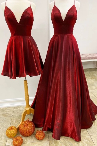 Burgundy Satin Long V Neck A Line Prom Dress, Evening Dress,SB2253