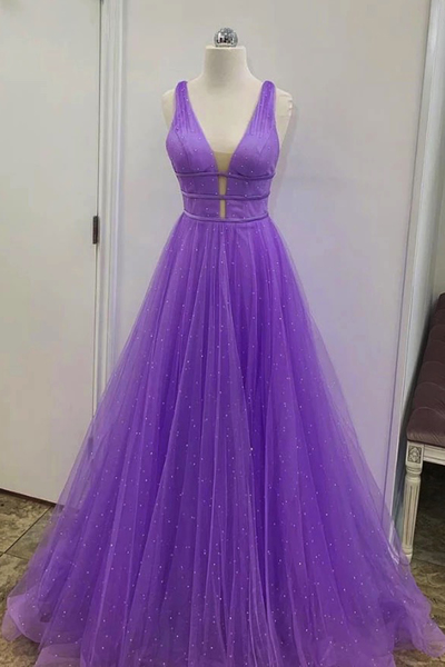 Unique Light Purple V Neck Long A Line Prom Dress,SD2256