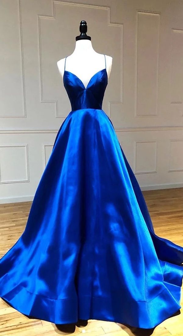 Royal Blue Satin Lace Up Open Back Long Prom Dress,Party Dress,SB2269