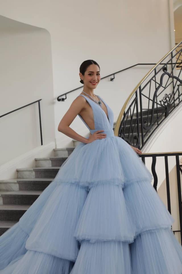 Blue Tulle V Neck Layered Long Formal Prom Dress, Ball Gown,SB2276