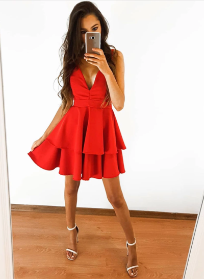 Modern A Line Deep V Neck Red Short Homecoming Party Dress,SB2036