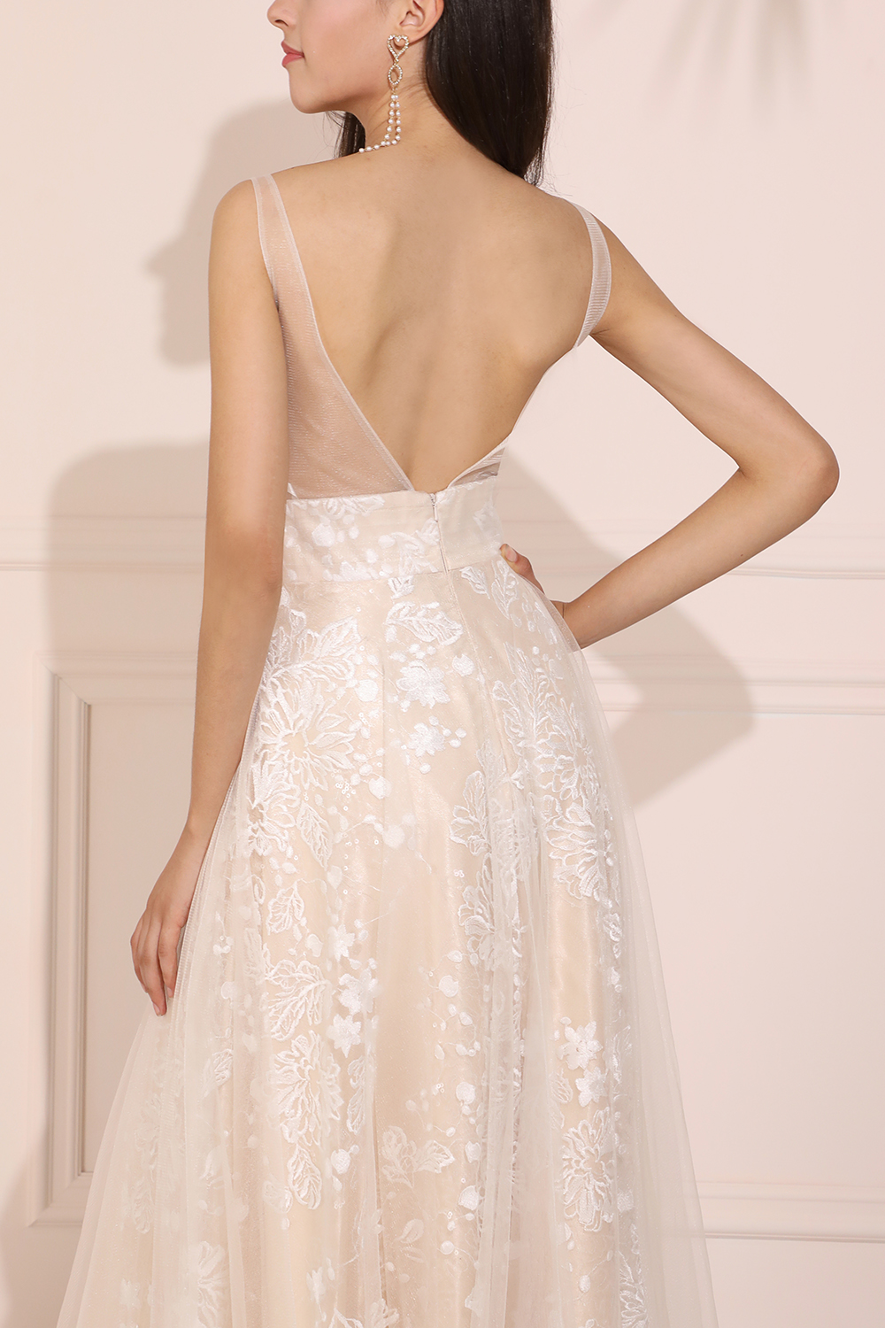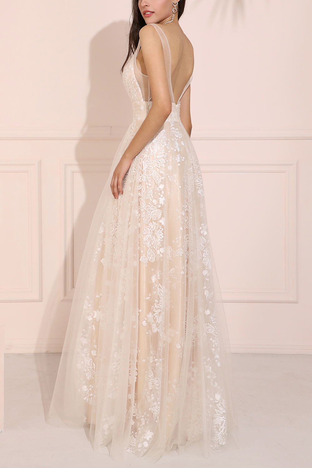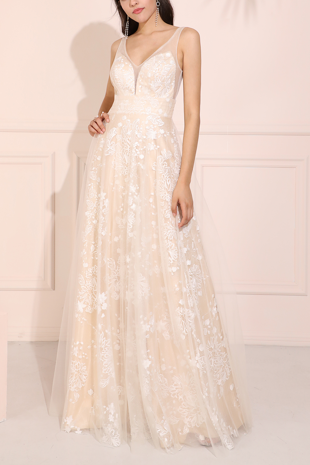 Glamorous A Line V Neck Light Champagne Long Prom/Evening Dress Appliques,SB2248