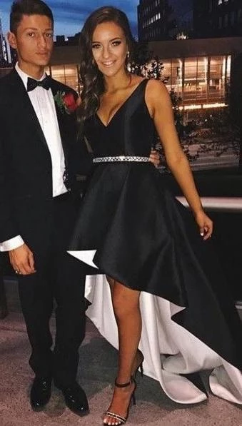 Stylish A Line High Low Black Prom Party Dress with Beading,SB2255