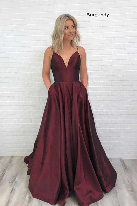 Simple A Line Spaghetti Straps Red/Burgundy Long Prom/Evening Dress,SB2256