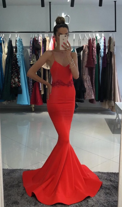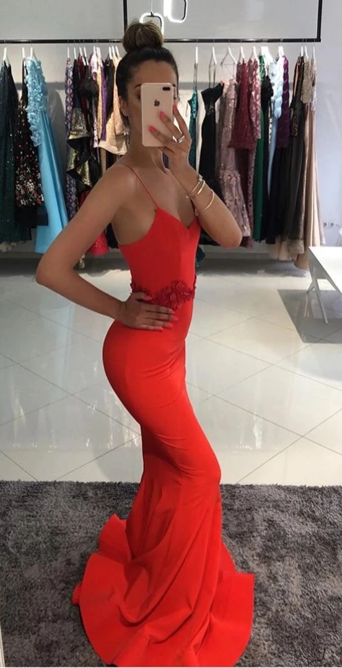Hot Sexy Mermaid Spaghetti Straps Red Long Prom/Evening Dress Appliques,SB2258