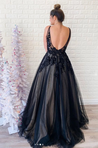 Gorgeous A Line Spaghetti Straps Black Long Prom/Evening Dress Appliques,SB2261
