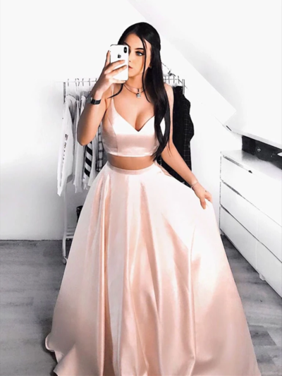 Two Piece A Line V Neck Pink Long Prom/Evening Dress,SB2270