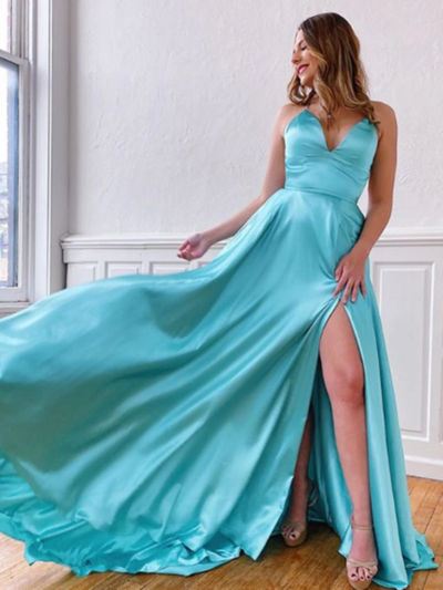 New Arrival A Line Spaghetti Straps Blue Long Prom/Evening Dress Criss Cross,SB2271