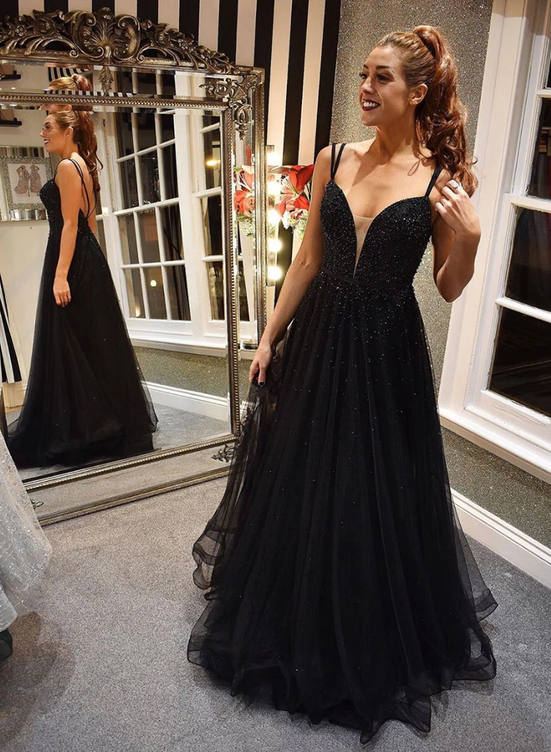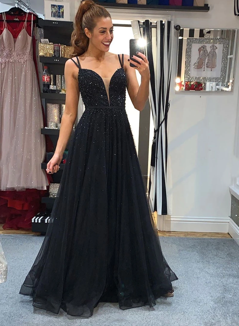 Cheap A Line Spaghetti Straps Navy Blue Long Prom/Evening Dress Beading,SB2282