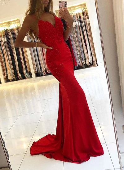 Sexy Mermaid V Neck Red Long Prom/Evening Dress with Appliques,SB2308