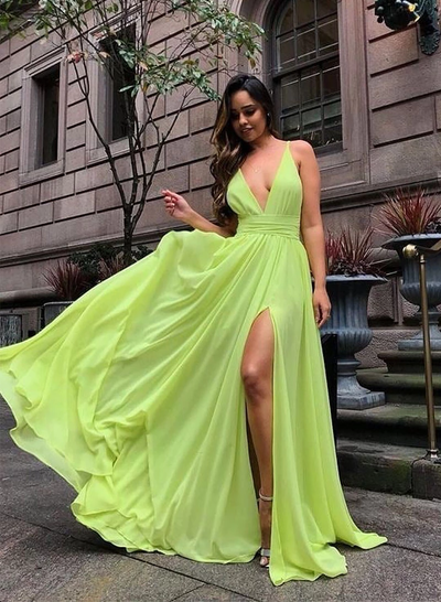 Discount Sexy A Line Deep V Neck Light Green Prom/Evening Dress Ruffles,SB2311