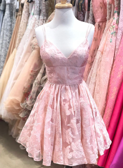 Beautiful A Line Spaghetti Straps Pink Short Homecoming Dresses,SB2322