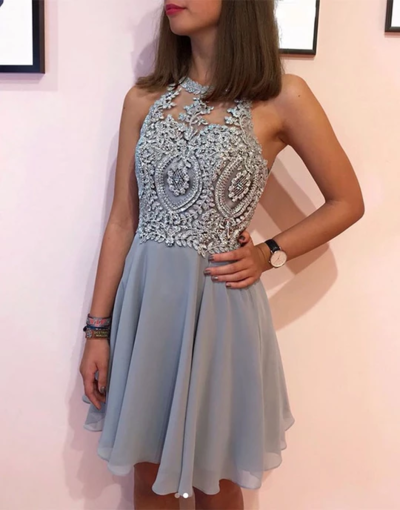 Stylish A Line Jewel Gray Short Homecoming Party Dresses with Appliques,SB2332