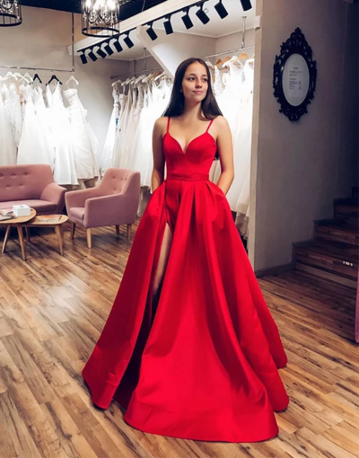 Charming A Line Spaghetti Straps Red Long Prom/Evening Dresses Ruffles,SB2336