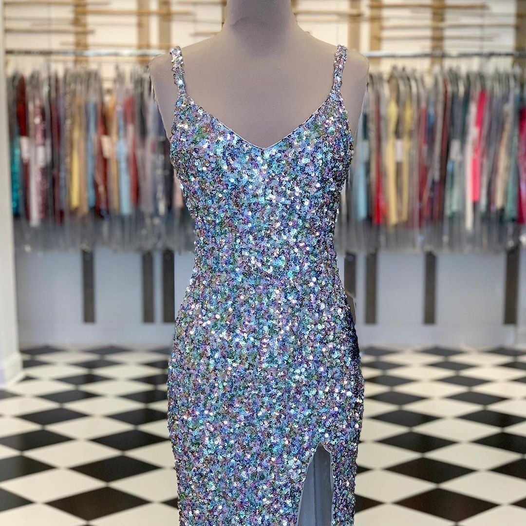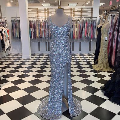 Bling Bling Sheath V Neck Silver Sequins Long Prom/Evening Dress Split Front,SB2289