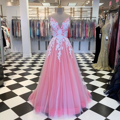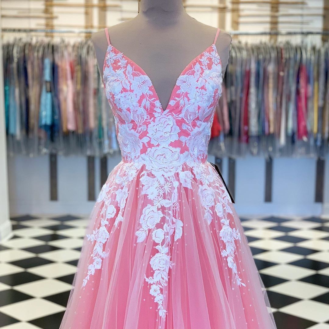 Gorgeous A Line Spaghetti Straps Pink Long Prom/Evening Dress Appliques,SB2290