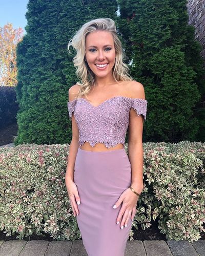 Stylish Two Piece Off the Shoulder LIght Purple Short Homecoming Dresses,SB2304