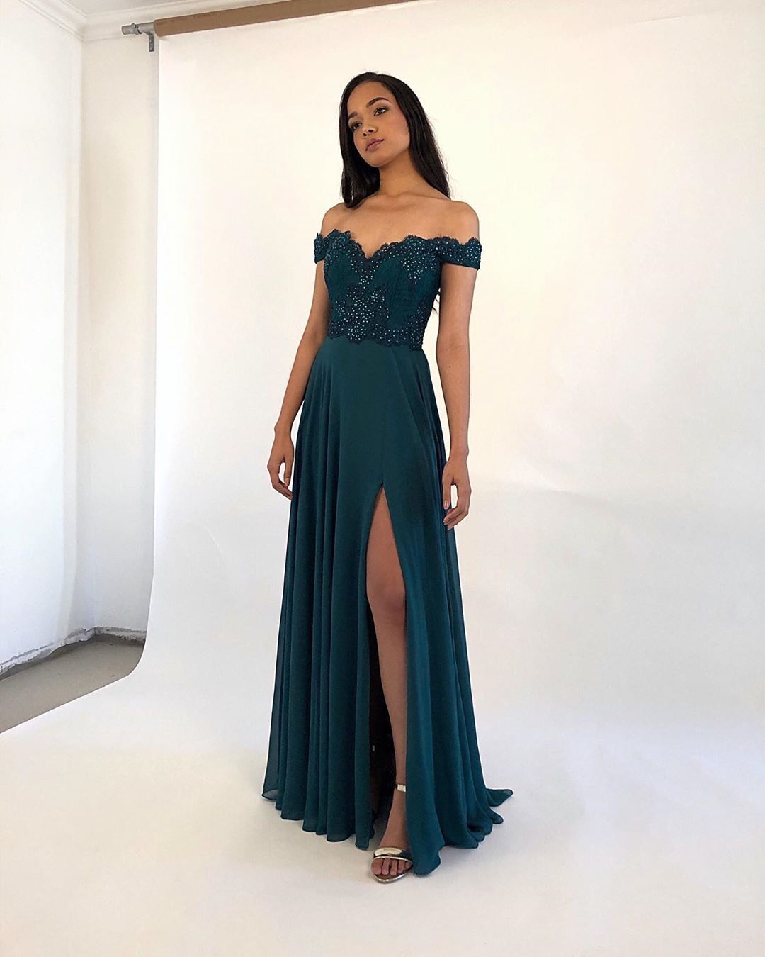 Classic A Line Off the Shoulder Burgundy/Green Long Prom/Evening Dresses with Appliques,SB2305