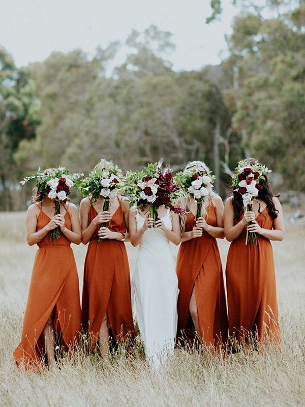 Beautiful A Line V Neck Orange Long Bridesmaid Dresses,SB2308