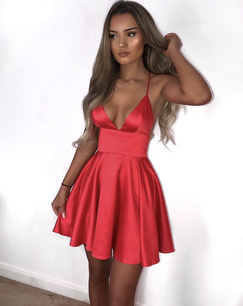 Spaghetti Straps Deep V-neck Red Short Prom Dress,Mini Cocktail Dresses,SB2335